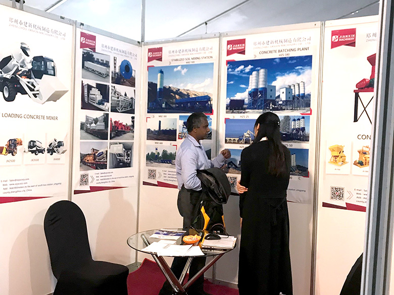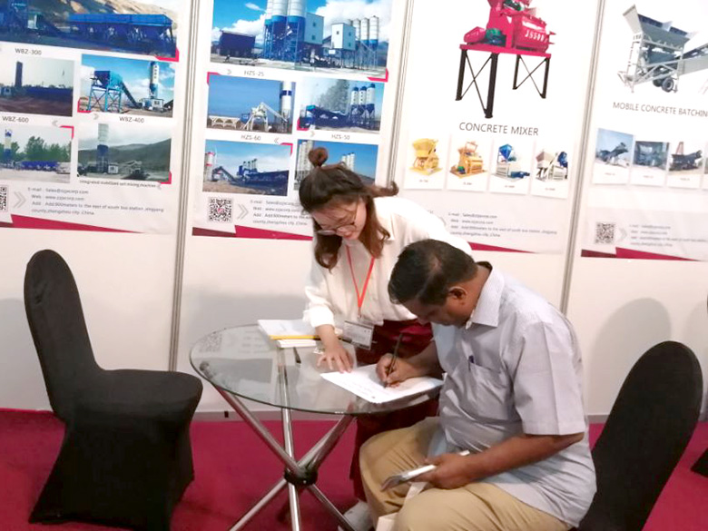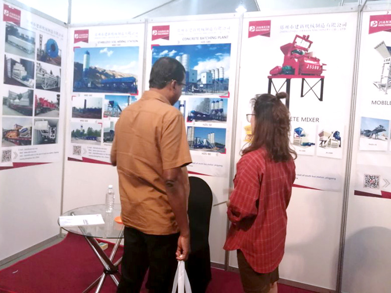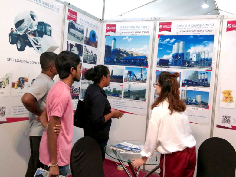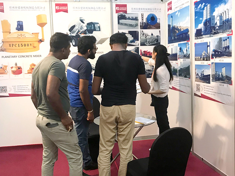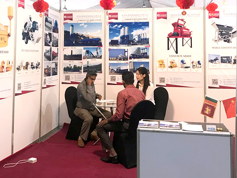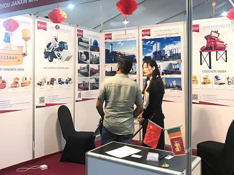 混凝土搅拌站、WBC系列稳定土拌合站等产品吸引了络绎不绝的观展者驻足洽谈。接待人员不失时机地向来观展的客户介绍建新机械的技术优势、产品特点、售后服务及销售代理政策,其热情的讲解受到了广大斯里兰卡客户和当地工程机械人士的关注,部分客户当场展开了详细的商谈。